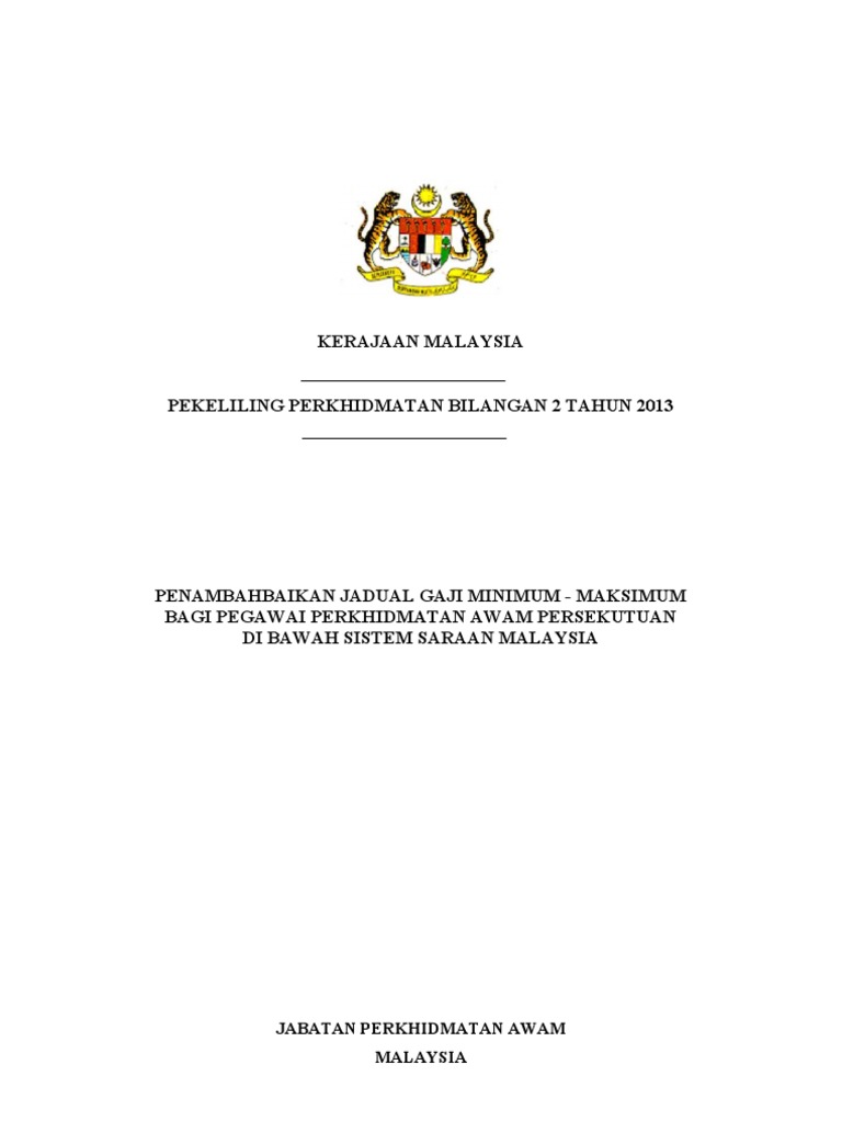 Pekeliling Perkhidmatan Bil 2 2013 Penambahbaikan Jadual Gaji Minimum Maksimum Bagi Pegawai Perkhidmatan Awam Persekutuan Di Bawah Sistem Saraan Malaysia Pdf